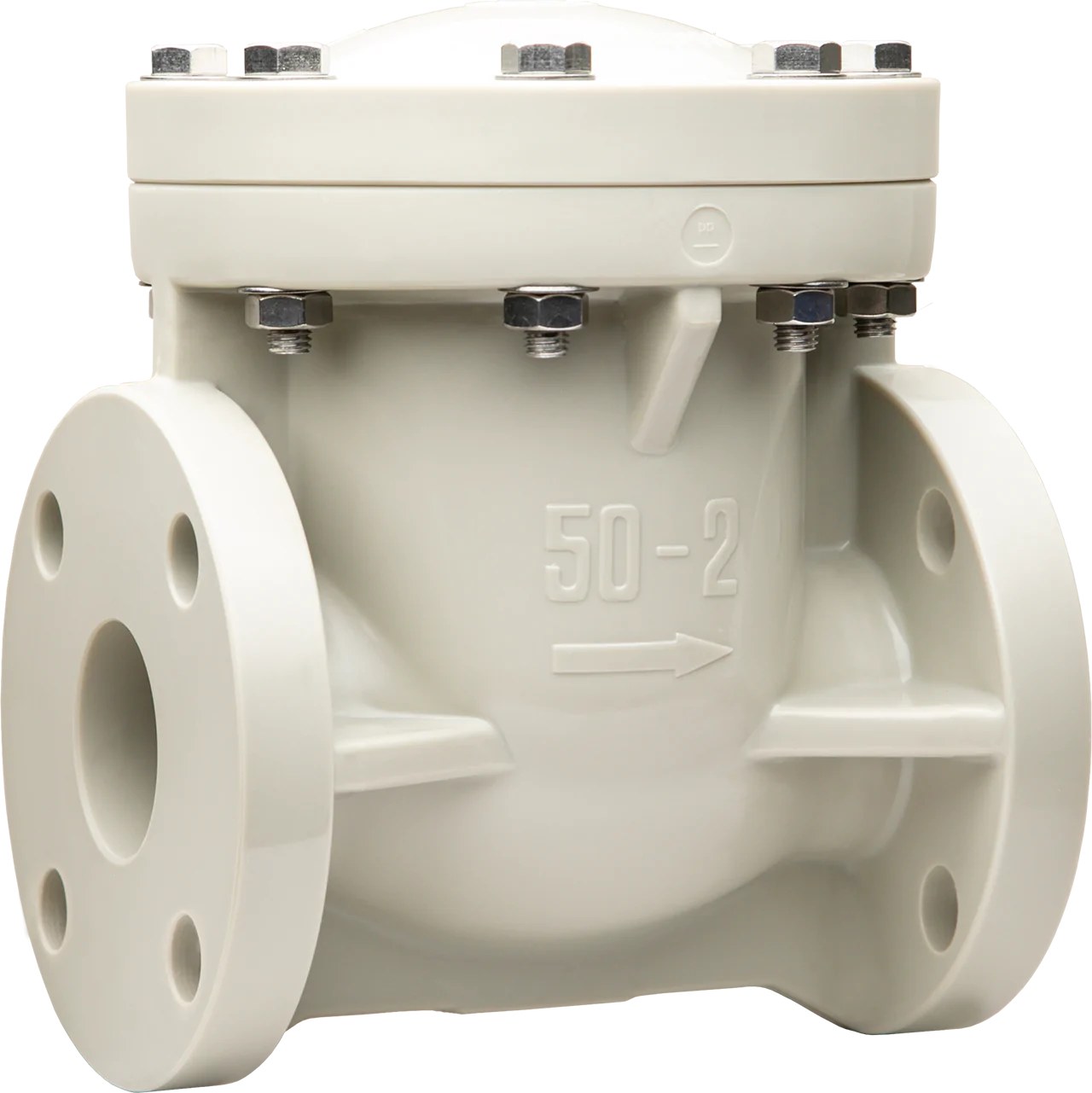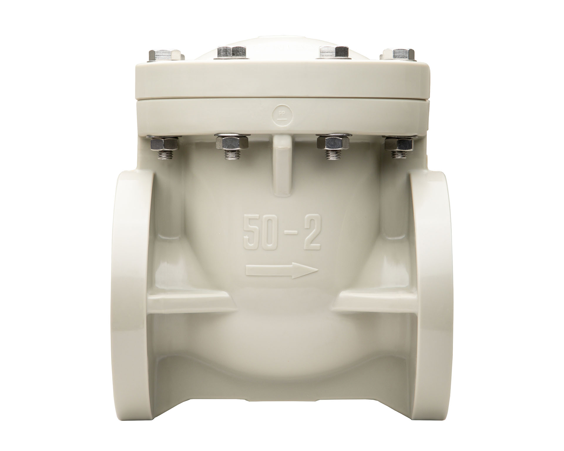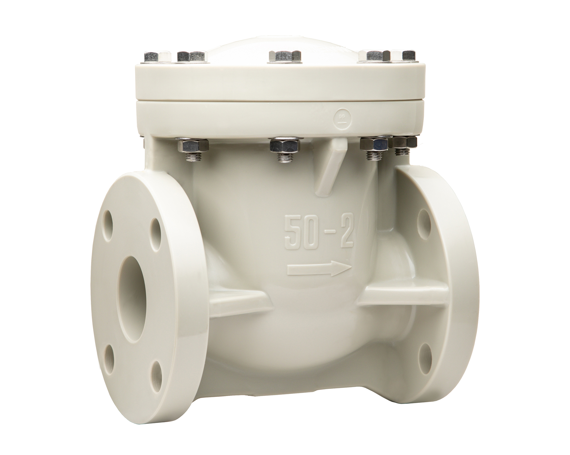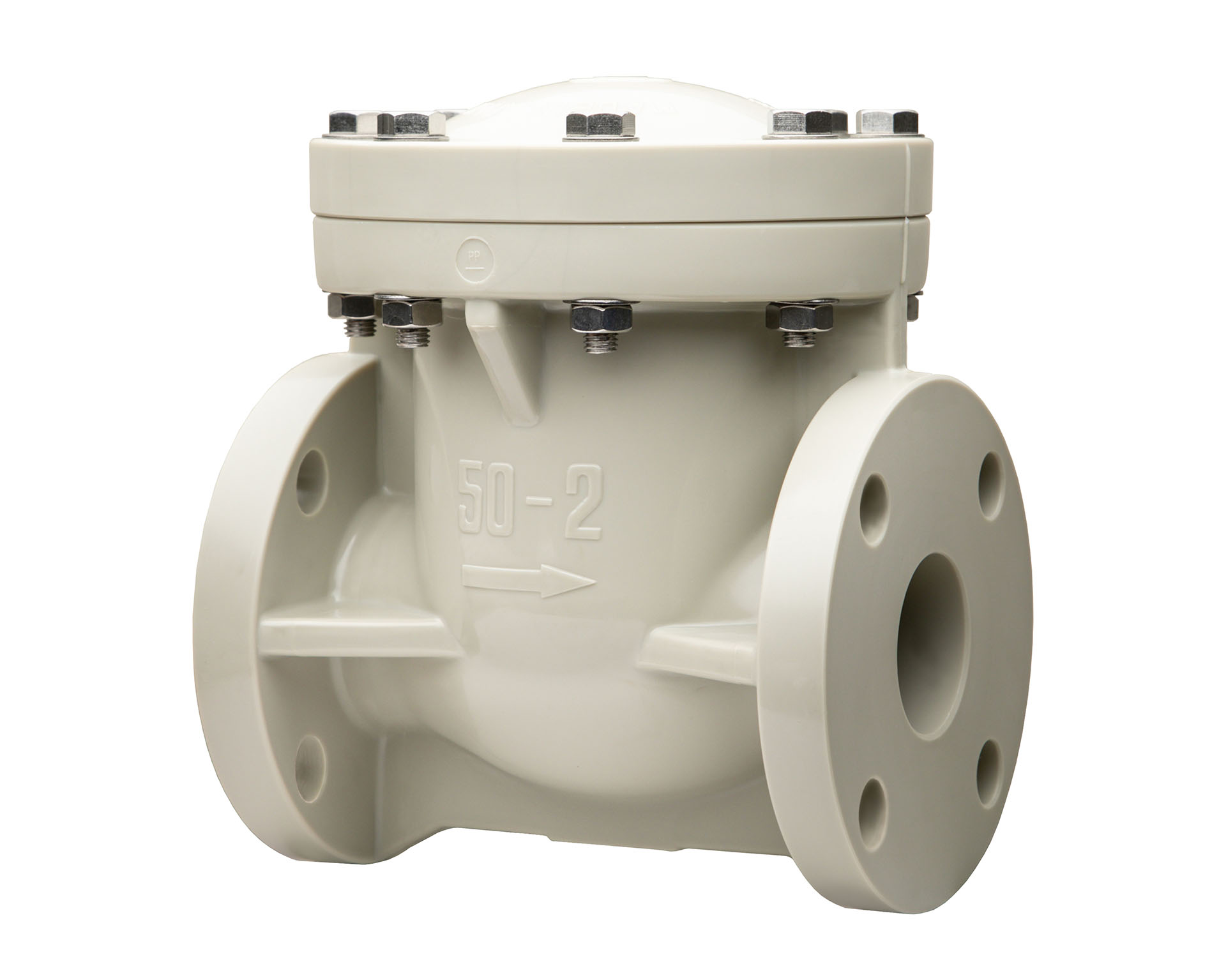 The Swing Check Valve prevents backflow, thus protecting equipment, such as a pump. Being of an swing arm type, the valve gives little resistance to flow. The valve is highly resistant to corrosive chemicals, acid and alkaline, because of its plastic construction. To maintain the valve, only the bonnet lid has to be removed, without taking the body out of pipeline.