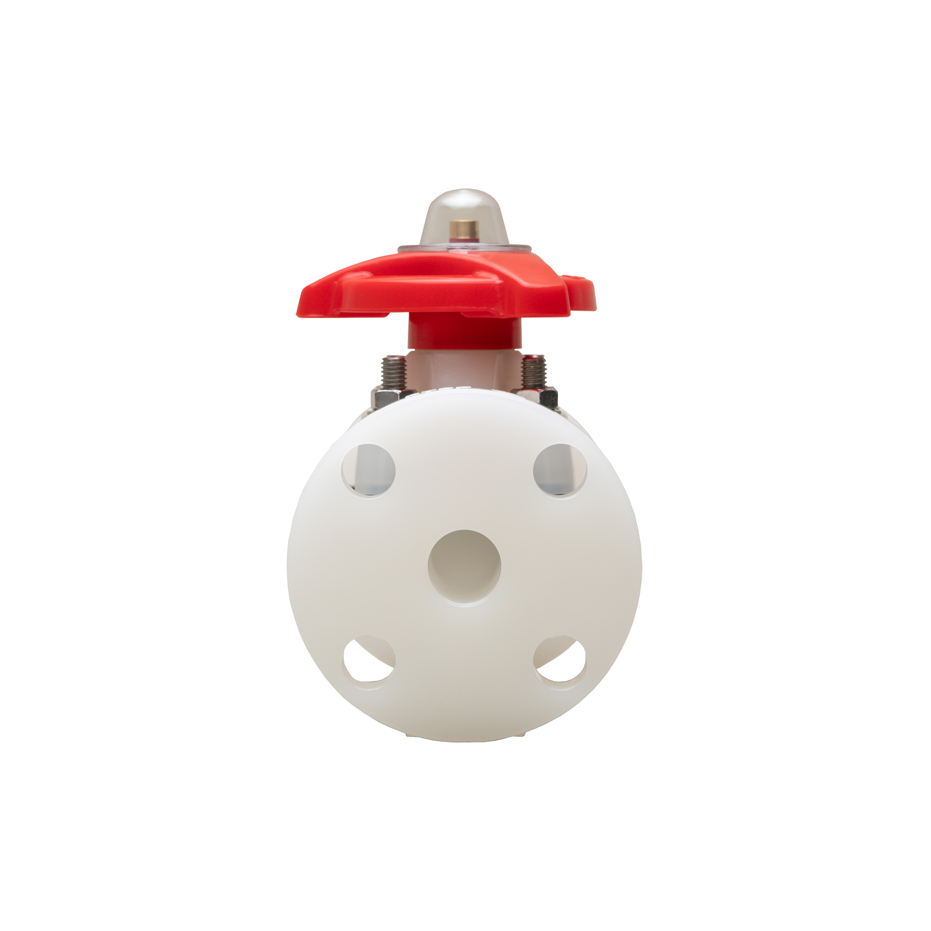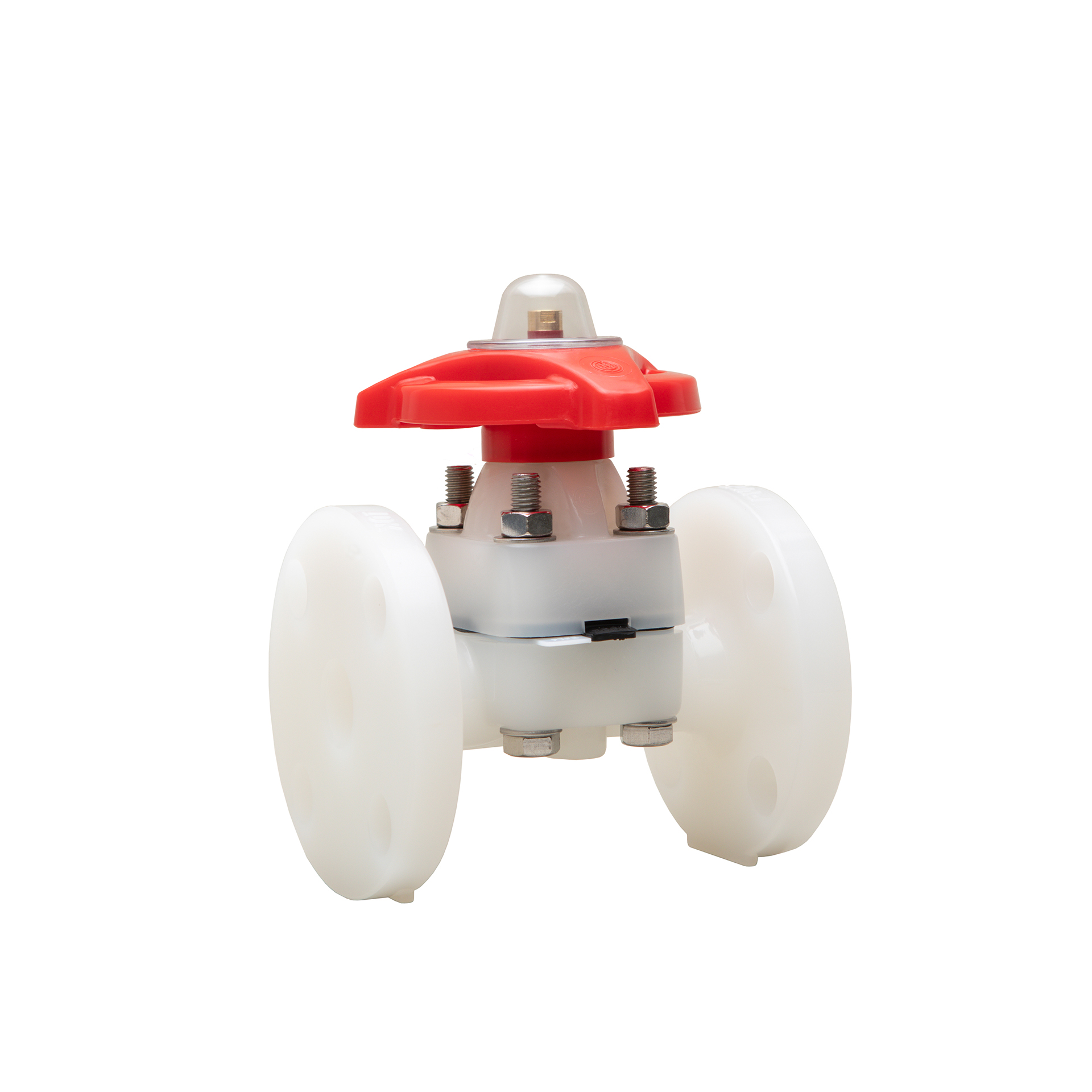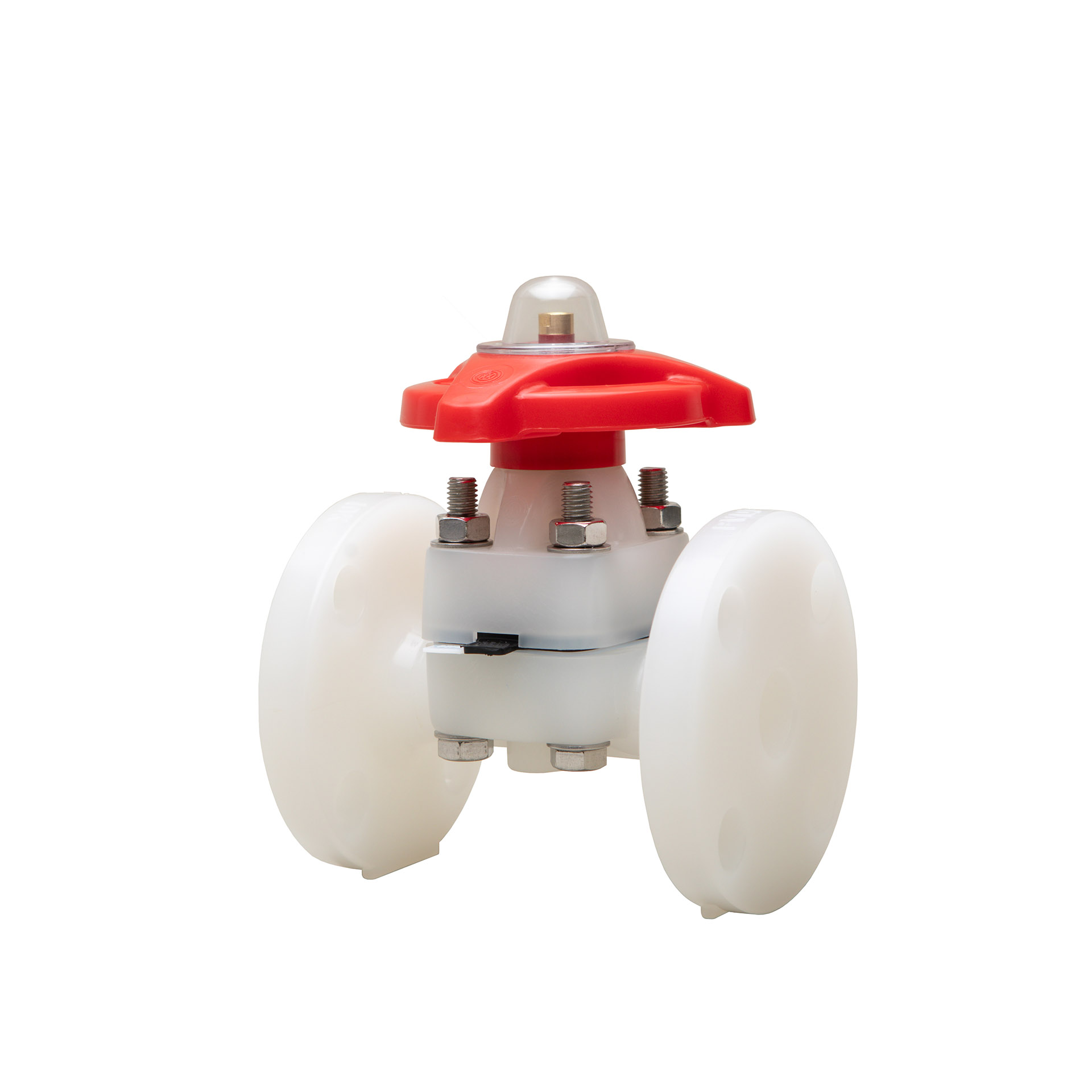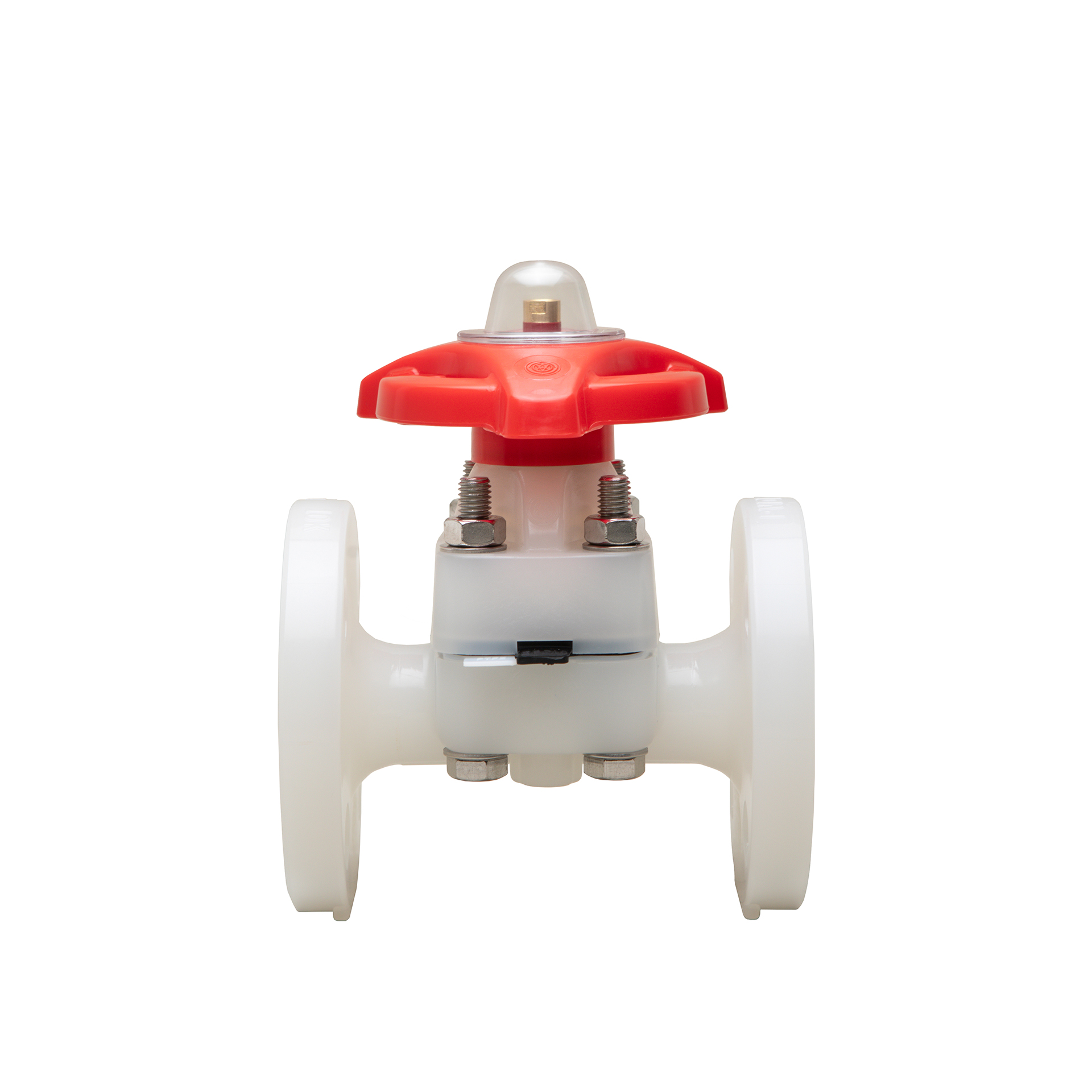 Diaphragm Valve Type 14 made of solid thermoplastic materials for maximum corrosion resistance has a one-piece molded construction body without production joints for spigot or flange, and increases safety and durability to the maximum level. It features excellent body-to-bonnet sealing performance, weir design for excellent throttling capabilities, and built-in travel stop to prevent over-tightening and eliminate compressive strain. Bubble-tight sealing can be achieved even in tough applications. True union design for socket, threaded, and spigot connections is available up to DN50.