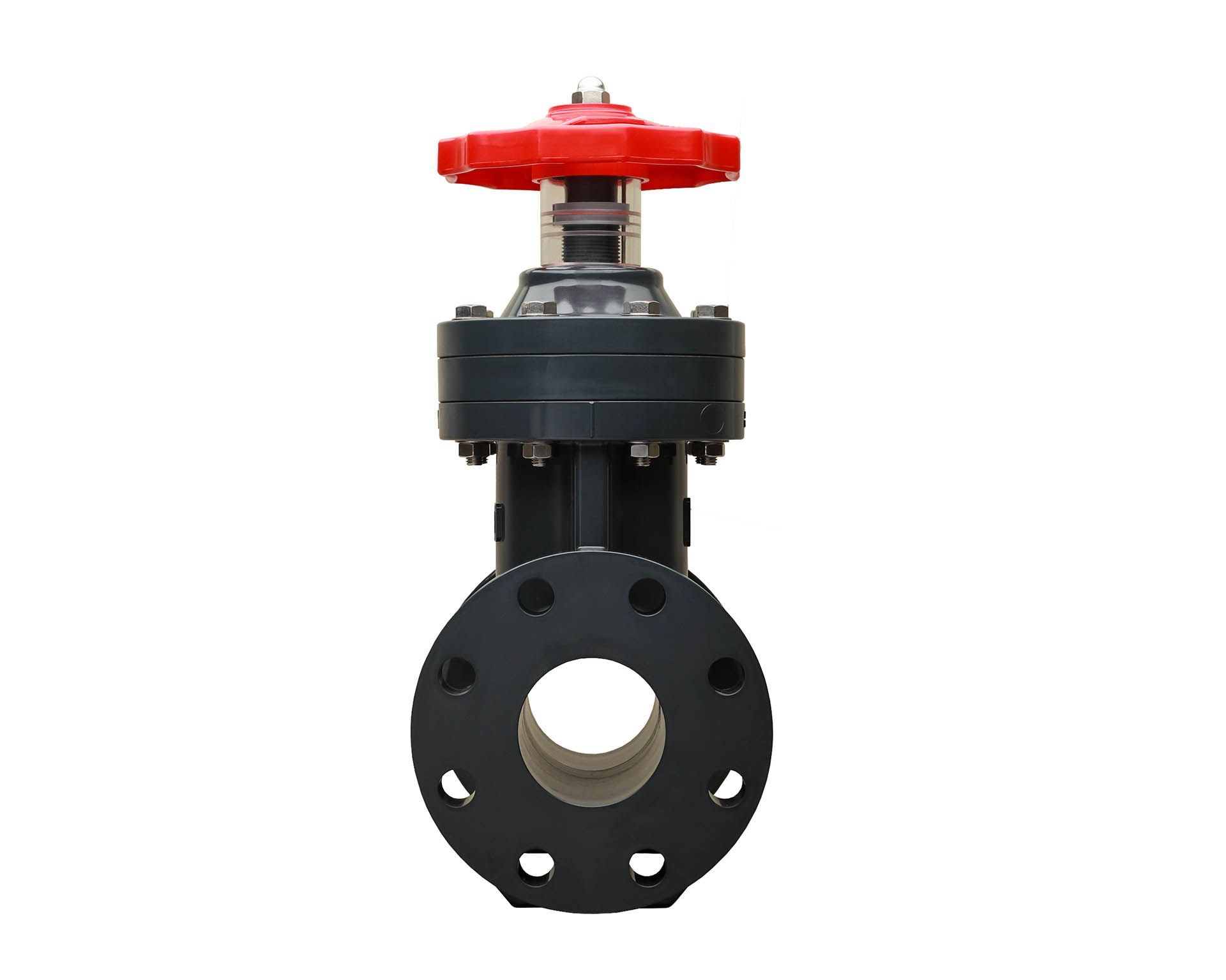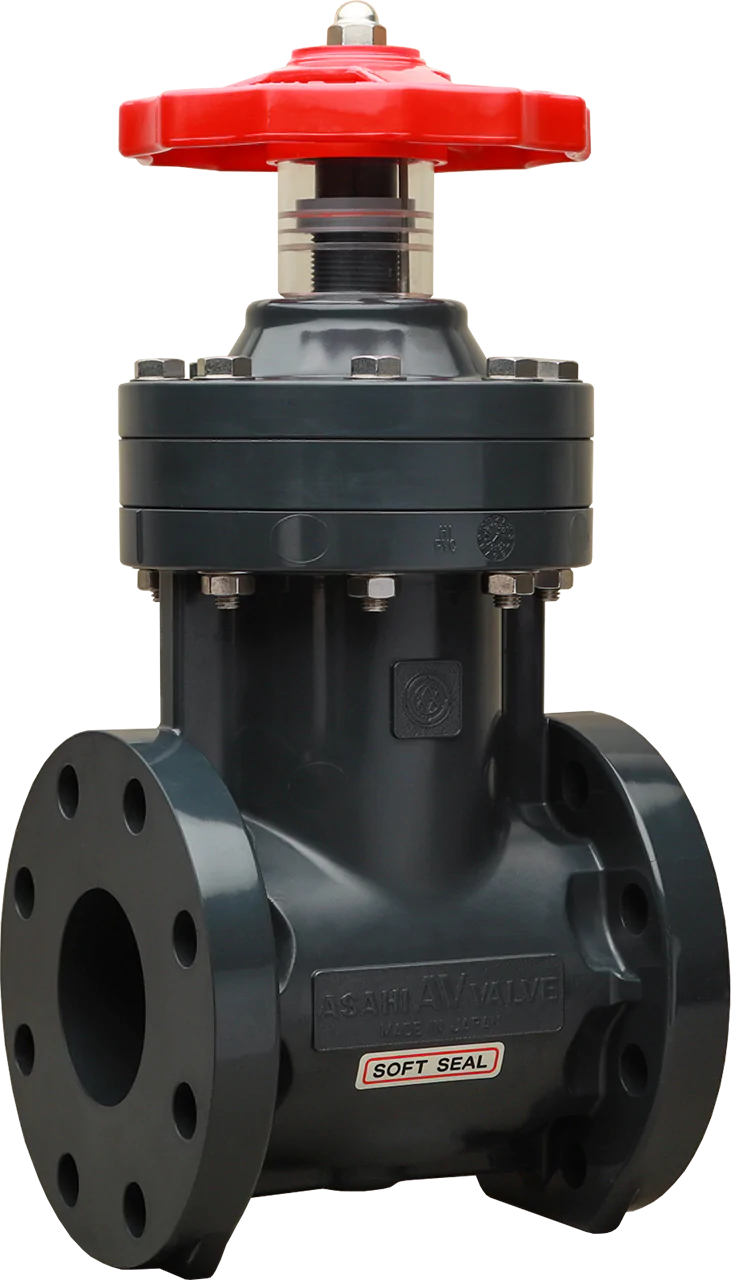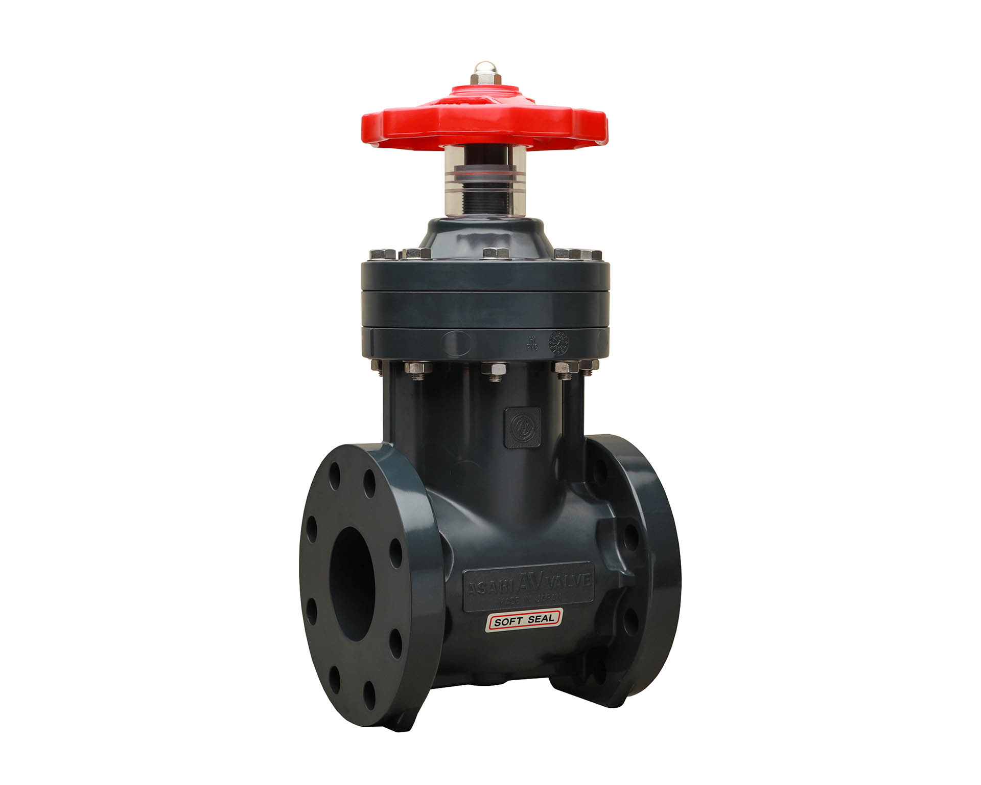 The Asahi Type P Gate Valve with a round handwheel and soft seal is designed for industrial applications requiring reliable and efficient flow control. This variant is equipped with an opening indicator under the handwheel, allowing for easy verification of the valve's opening degree. Constructed with corrosion-resistant materials for all wetted parts, ensures this valve delivers long-lasting performance even in harsh environments. The valve is made from robust, lightweight, and impact-resistant hard polyvinyl chloride (HI-PVC), making it significantly lighter than comparable metal valves. The smooth channel surface, free from irregularities, allows for unobstructed flow, while the rubber soft seal ensures excellent water tightness, providing a secure and leak-proof operation. Its superior material properties and innovative design make the Asahi Type S Gate Valve with a soft seal an ideal choice for applications where corrosion resistance, lightweight construction, and reliable performance are paramount.